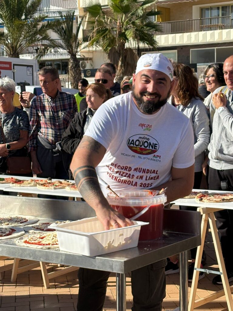 Un total de 25 pizzeros llegados de toda España, Italia y Argentina han participado en la consecución del récord, que ahora se intentará que sea validado por Guinness (tras constatarlo un notario de la localidad y el propio Consistorio). En Fuengirola no sólo se ha superado el anterior registro, sino que también lo han hecho más rápido y con equipos más pequeños que los utilizados en Emiratos Árabes: en 3 horas y 45 minutos y con sólo cinco hornos con capacidad para cinco pizzas.